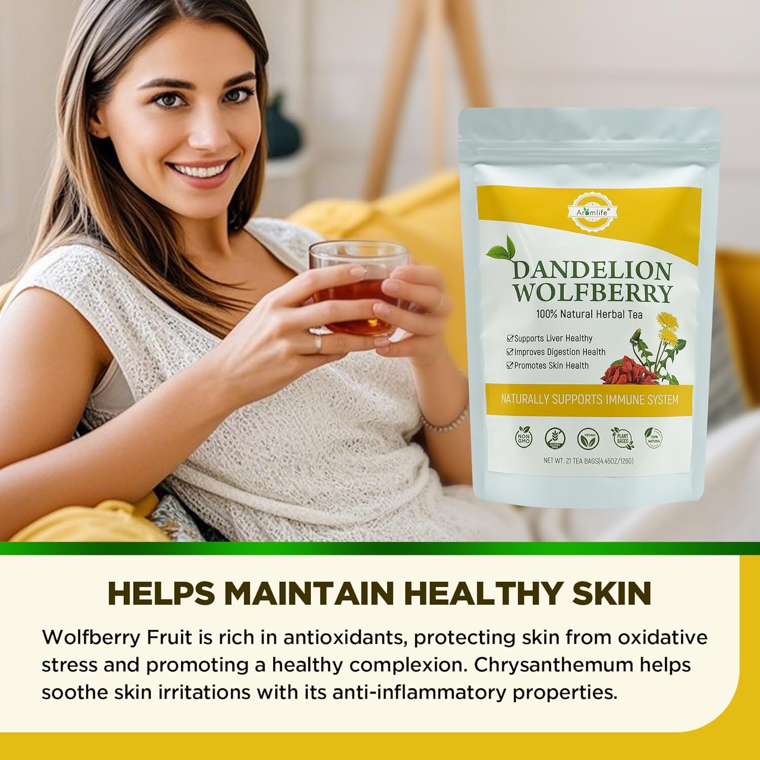 - Good for Skin and Wellness: The dandelion wolfberry tea is rich organic tea blends. Gentle combination of wolfberry and chrysanthemum supports healthy skin and contributes to a youthful, radiant appearance by promoting your body's internal health.